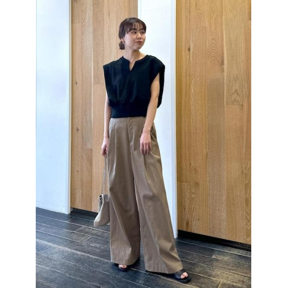 たっぷりとしたワイドシルエットに生地感はしっかりと高級感があり、カジュアルにも綺麗めに使えます!
