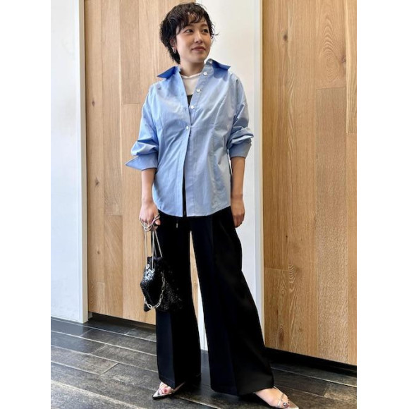 シンプルだけどバランス感に拘ったスタイル。 ウエストシェイプのシャツに ワイドなパンツを合わせて大人の余裕を漂わせます。 シンプルだからこそ煌びやかなグッズで 華やかなスプリングサマースタイルに。 T shirt/JANE SMITH EUM34430 PRICE/13,750taxin BAG/BIGOTRE EUX34320 PRICE/¥27,500