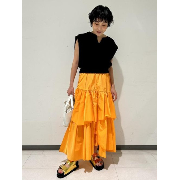 ニット×スカートとシンプルですが 各々のデザイン性を活かす華やかコーデに。 鮮やかなブライトカラーはボトムで取り入れると 顔元から離れて着やすい、おすすめの着方です。 新生活に気分をあげてくれるカラーアイテムはいかがですか?☺︎