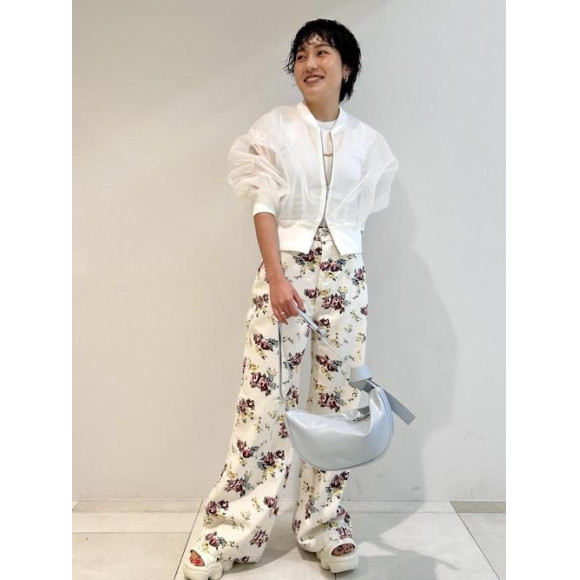 花柄プリントのデニムが主役の カジュアルコーデ。 柄が活きるようトップスはホワイトにまとめ、 同じホワイトでも質感の違うアイテムで奥行きが出るようにしました。 Tshirts/Hanes EUM34810 PRICE/¥6,600taxin