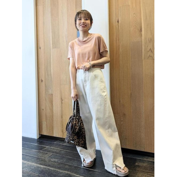 女性らしいベージュのお色と程よくゆとりのあるシルエット、若干の透け感と可愛いところが沢山あり使いやすい1枚です!