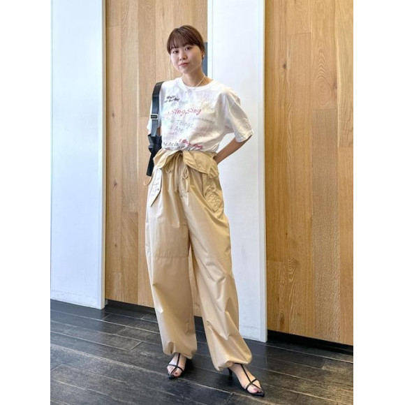 前回のロンパースを使った着回しスタイリングのご紹介です。ウエストをぎゅっと絞るとワークパンツとして着用可能☺︎今回は裾のドロストコードも絞ってます!