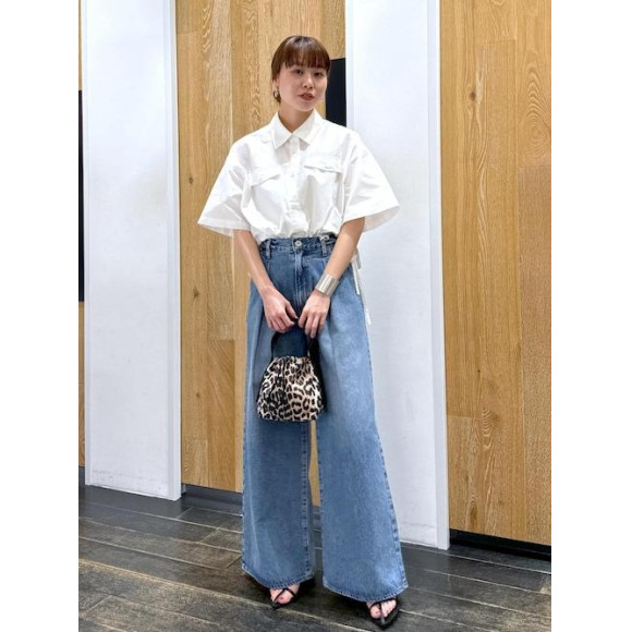 今回はクロップドギャザリングシャツに間違いないデニムスタイリングです○普通にならないように、裾はぎゅっと絞ってリボンで可愛さをプラス。♡NEEDBY(ニードバイ)の別注ワイドパンツは、とにかくシルエットがきれいでした!