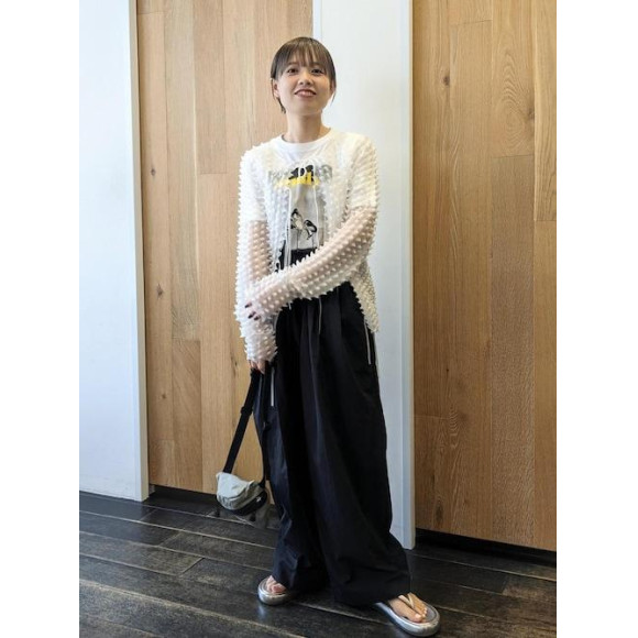 広島店にも初めて入荷したブランド"オープンセサミクラブ" デザインがどれも可愛いのが特徴的です。 着用しているこちらのトップスもストレッチ性がある生地感で身体のラインを拾いすぎないのが嬉しいポイント! 2wayでお使いいただけるのでリボン側を後ろにしても〇