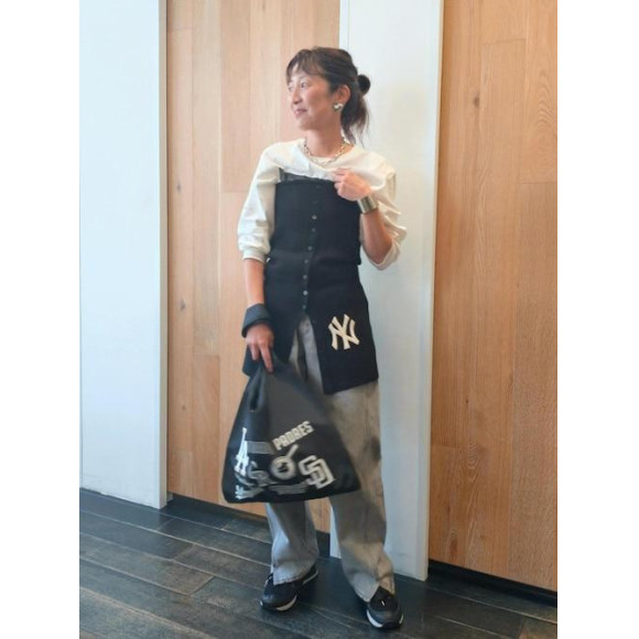 ニューヨーク・ヤンキースの刺繍からカジュアルにロンTとデニム、スニーカーで合わせてみました。