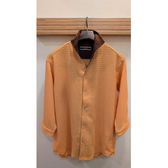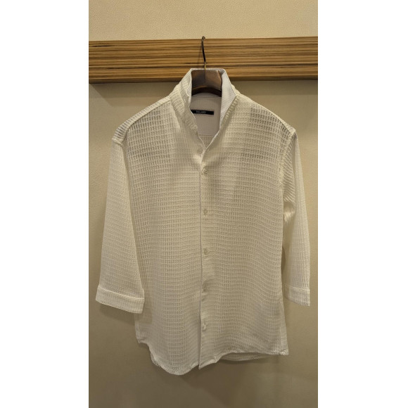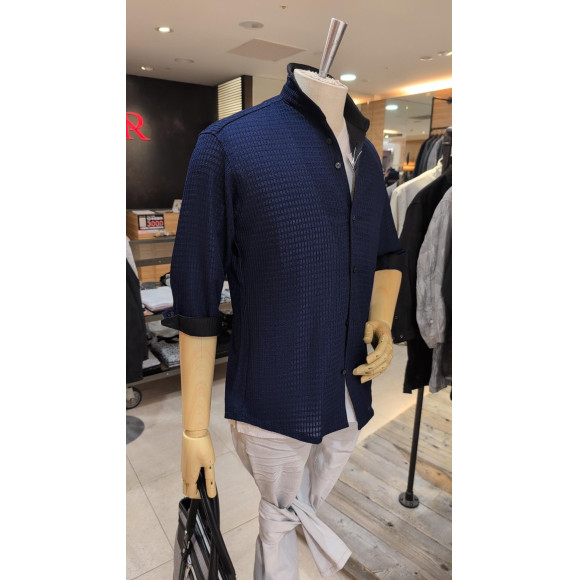 袖丈がひじ下の7分袖スタンドカラーシャツです。