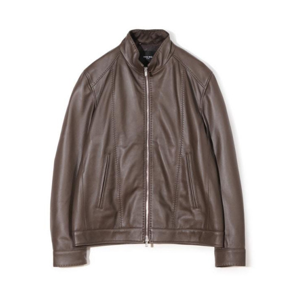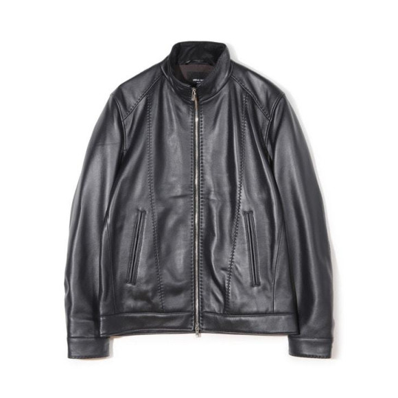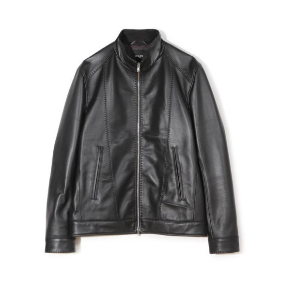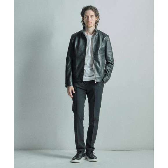 ラムレザーのソフトな肌触りと美しいシルエットが魅力の一着です。体に馴染むラムレザーはごわつかず、ストレスフリーな着心地。