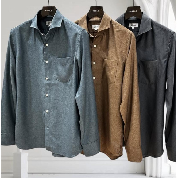 ムッシュニコルの定番カッタウェイカラーシャツ。