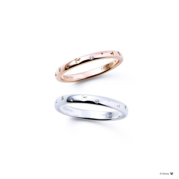 シンプルなフォルムに、ミッキーアイコンやストーンをランダムにあしらった遊び心あるデザイン。