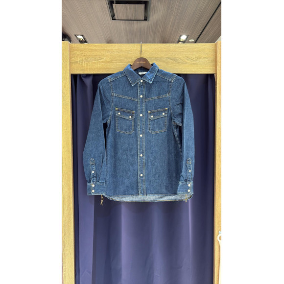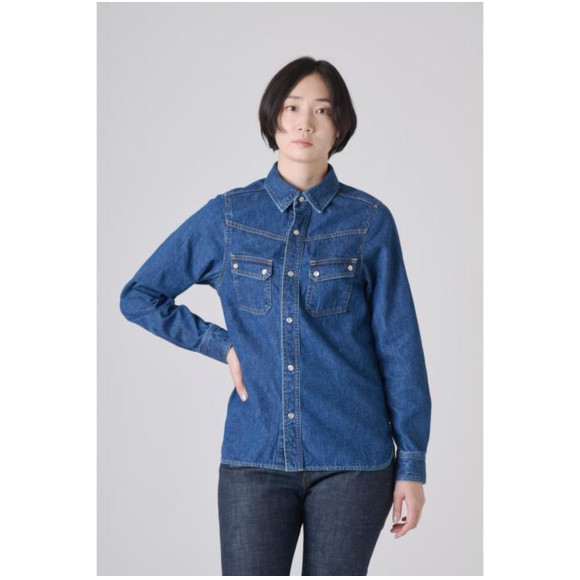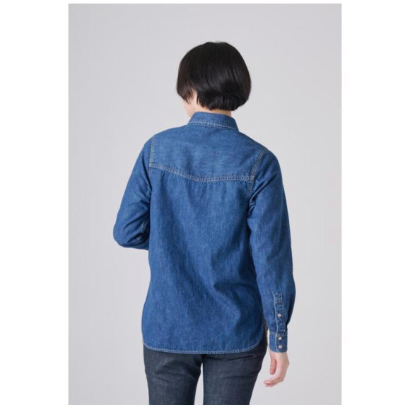 フラップ付きの胸ポケット、ウエスタン調のヨーク切り替え、カフス付きの袖など、ベーシックなディテールをしっかり押さえた一枚です。