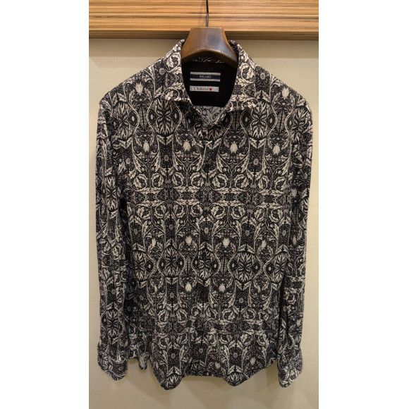 羽根衿の先端にワイヤーを仕込んだホリゾンタルカラーシャツです。