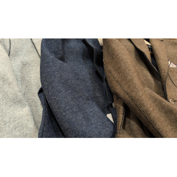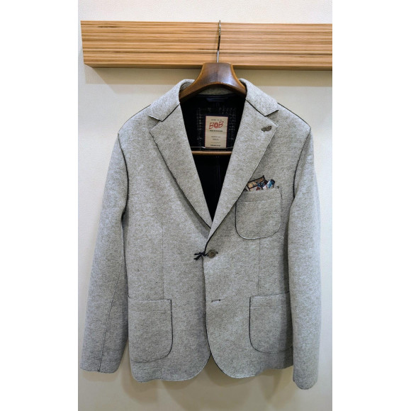 定番のウールボンディング素材、2Bノッチドラペルのプレーンなジャケットで、素材特有の型崩れ