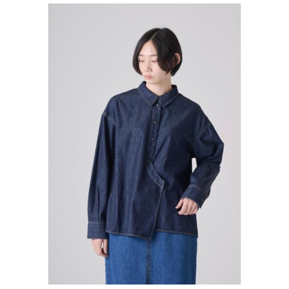 ベーシックなシャツ衿やカフスを残しながらも、ラップデザインによって抜け感のある表情をプラスしています。