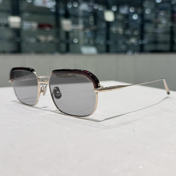 アセテートのブローパーツが付いたメタルのスクエアシェイプサングラスです。