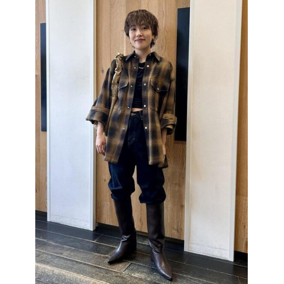 大人っぽいチェック柄とカラーバランスが 一枚で着映えすること間違いなし! リアルバイしたオススメのシャツです。 ゆったり大きめなシルエットなので 前に落ちるようにボタンを閉めて着ればカジュアル、 後ろに抜いて首元を開ければレディにも、 着こなし方で様々なアレンジがききます☺︎ 今回はメンズライクにかっこよく着てみました!