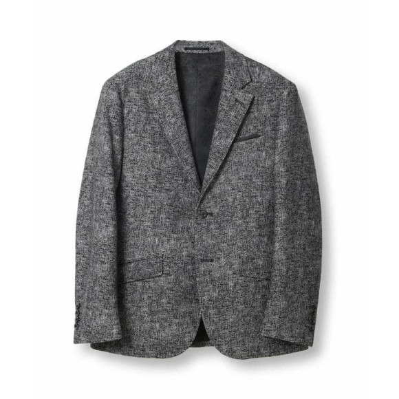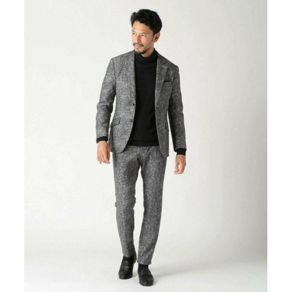 表面のツイード調プリントがクラシックな表情と高級感を演出し、ビジネスから休日まで幅広いシーンで活躍します。