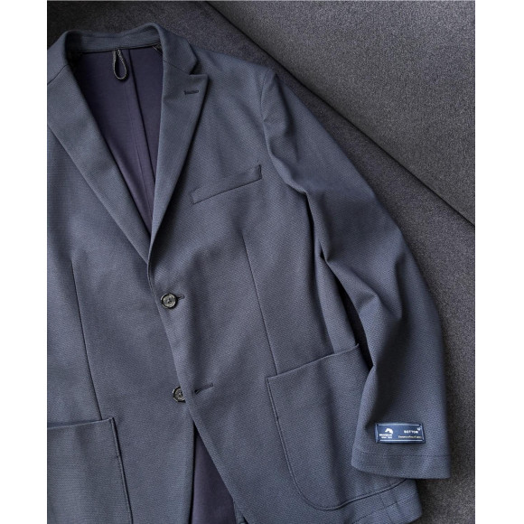 衿は、セミピークドラペルで変化を見せた、機能的でエレガンスなセットアップ対応ジャケット。