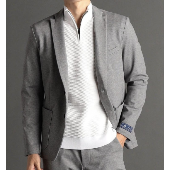 二つ釦セミピークドラペルジャケット。