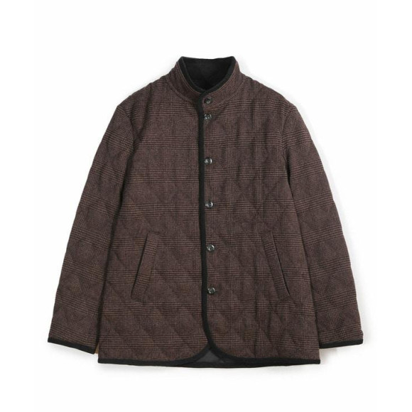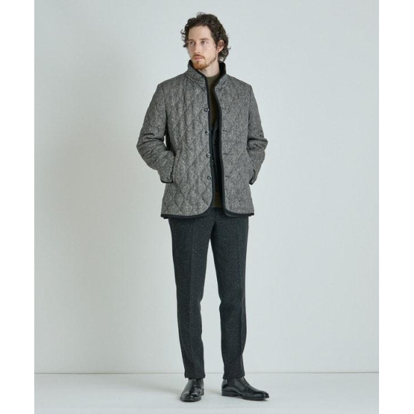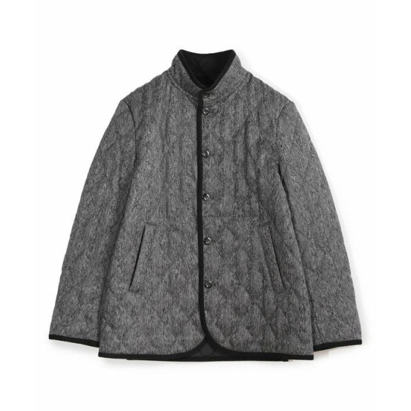 スタンドカラーですっきりと見せつつ風の侵入を防ぎ、季節の変わり目にも対応。ツイード素材の質感とダイヤ柄のモダンなディテールが融合し、大人の落ち着いた雰囲気と洗練された印象を併せ持つ一着です。