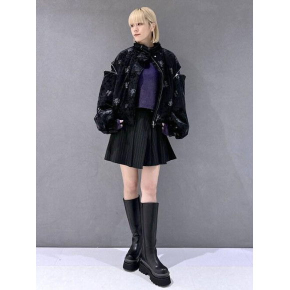 ◉ベロア素材はしっとりとした肌触りで、ジャガードはハリ感がある肌触りです