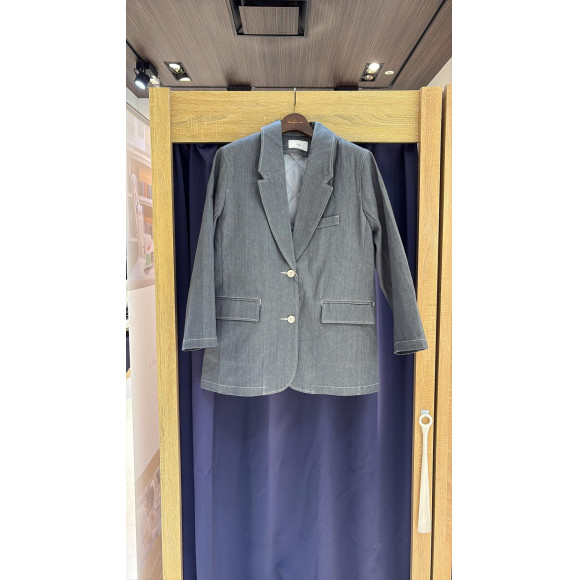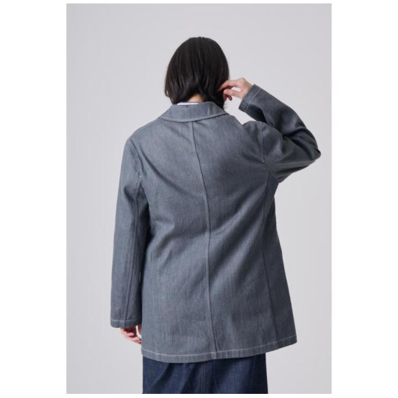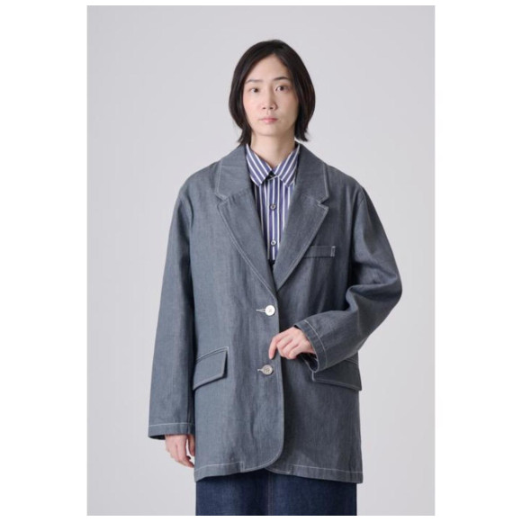 しっかりとしたデニム地を使用することで、マニッシュなテーラードジャケットにカジュアルなエッセンスをプラス。