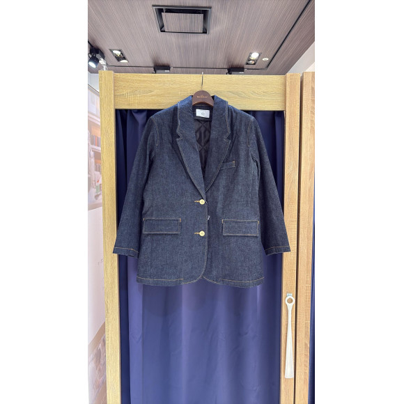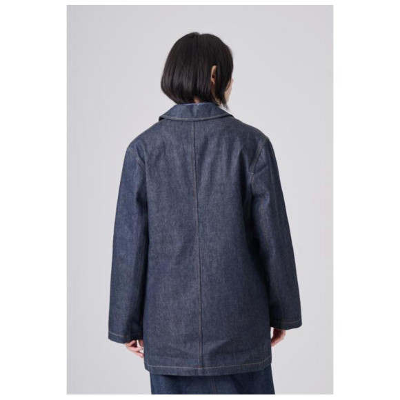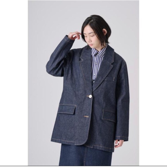 しっかりとしたデニム地を使用することで、マニッシュなテーラードジャケットにカジュアルなエッセンスをプラス。