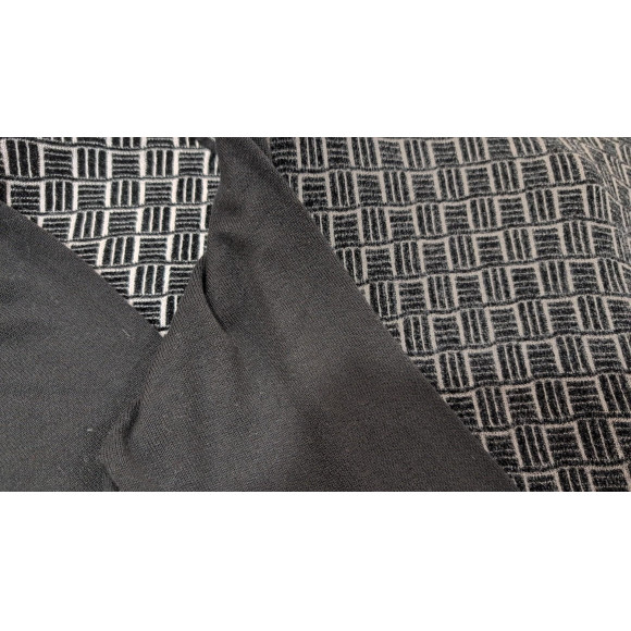 前身には立体的に編み立てたブロックチェック柄を配色で表現して陰影感のある洗練された印象に仕上げました。