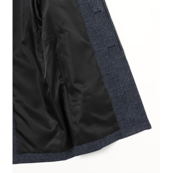 衿部分のカクシドットや、フロント比翼ボタン仕立ての、大人顔したシンプルコート。