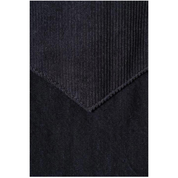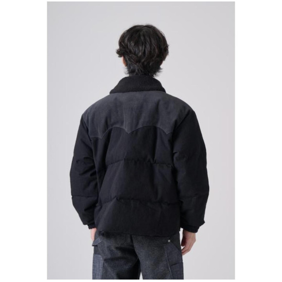 デニム、コーデュロイ、ボアで切り替えられたダウン。