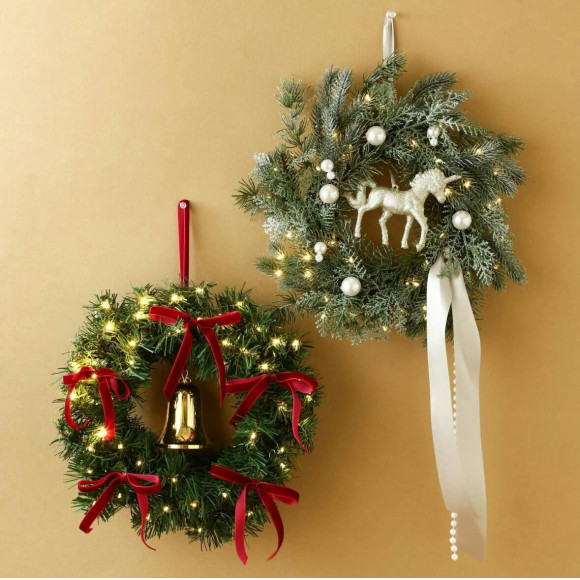 壁や扉にかけたり、棚の上などのスペースに置いて飾ったりと、1つ取り入れるだけでクリスマスムードを高めてくれます!!