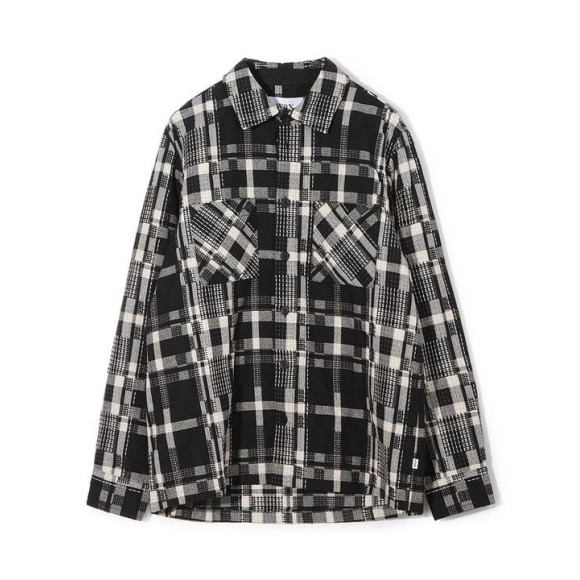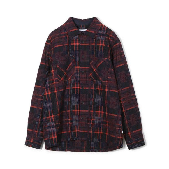 【遊び心あるチェック柄が目を引く、バスケット織りのチェック柄シャツジャケット】