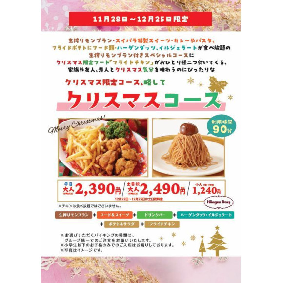 スイパラXmas限定コース「クリスマスコース」が期間限定登場