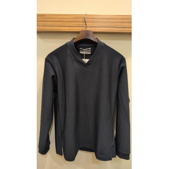 後衿を高めに設定したドレスカラー仕様でスタイリッシュな印象を演出しつつ、ジャケット等アウターの衿汚れを軽減してくれるインナー使いにも最適なカットソーです。