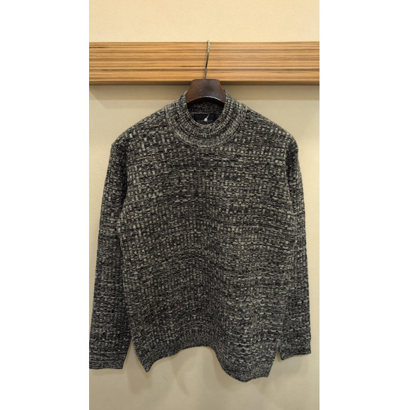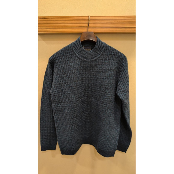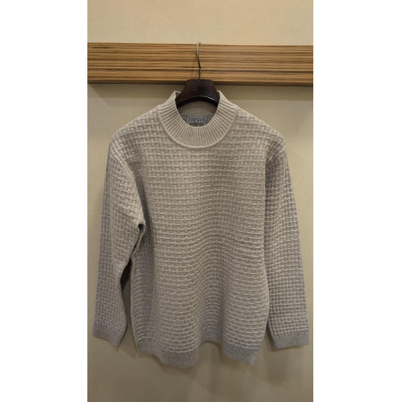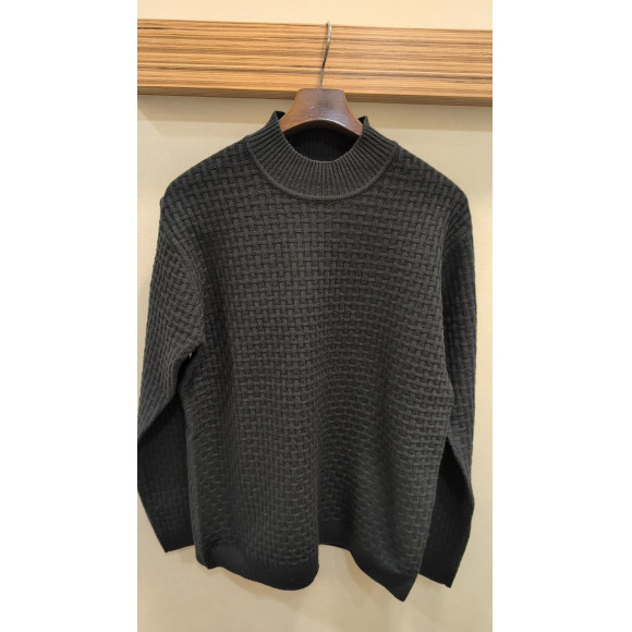 シックで上品なバスケット柄をリンクス編みで表現したモックネックニットです。