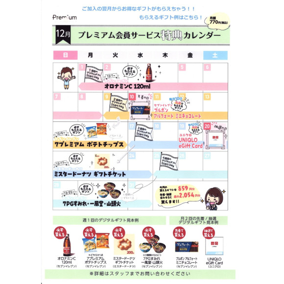 今月のプレミアム会員サービス特典カレンダーです!