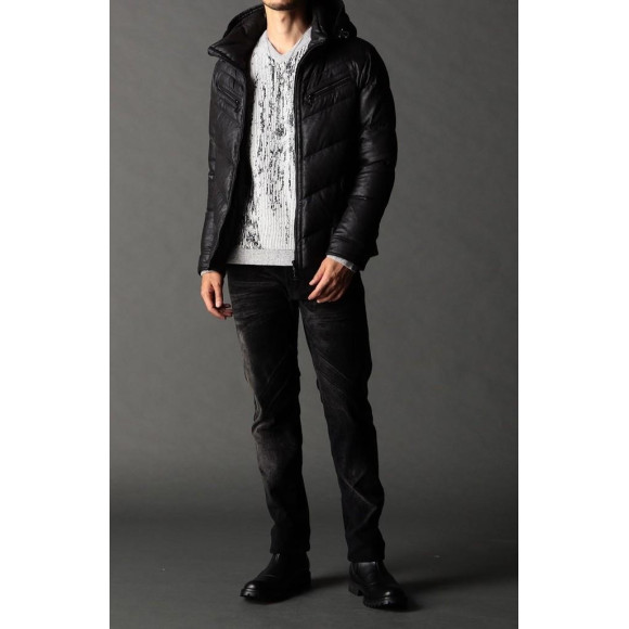 ウエストシェイプが綺麗な、シャープなシルエットのライダースダウンブルゾンです。