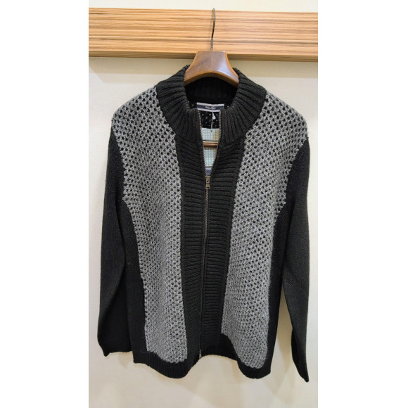 身頃を凹凸感のあるタックステッチで編み立てたドライバーズニットです。