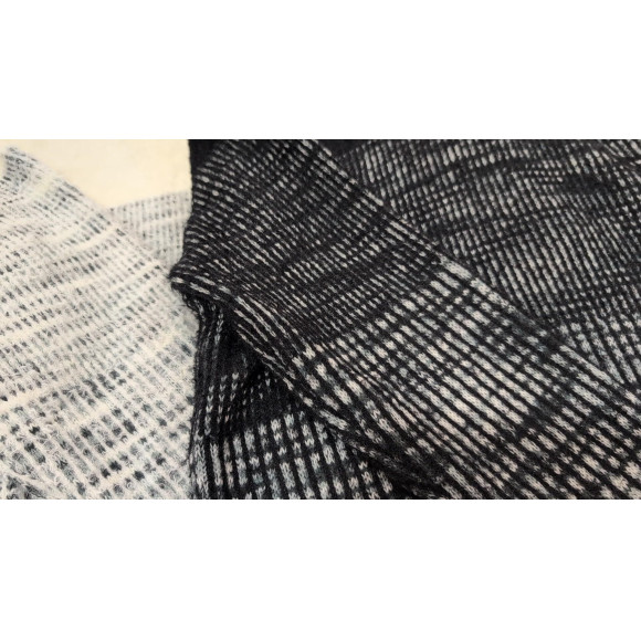 柔らかな触り心地で着心地に優れ、滑らかな毛並みと光沢、段染め糸のムラ感が大人ラグジュアリーな雰囲気を演出してくれます。