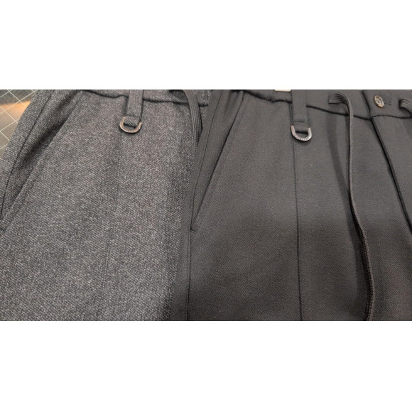 ウエストベルトには平ゴムを中に入れ、スピンドルを通したイージー仕様のスラックスパンツです。