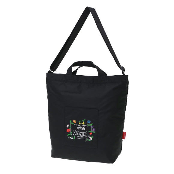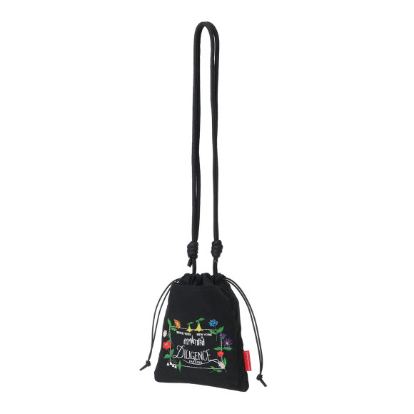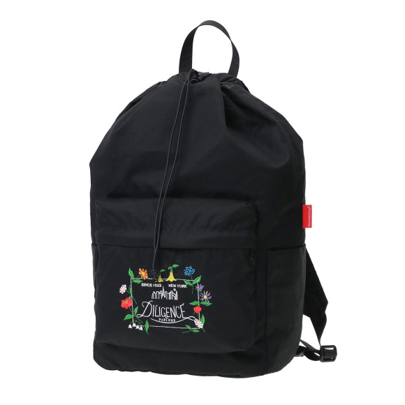 特徴的なコラボラベルには、Manhattan PortageのスカイラインとDILIGENCE PARLOURのロゴが表現され、更に華やかなフラワーの刺繍が施されています。