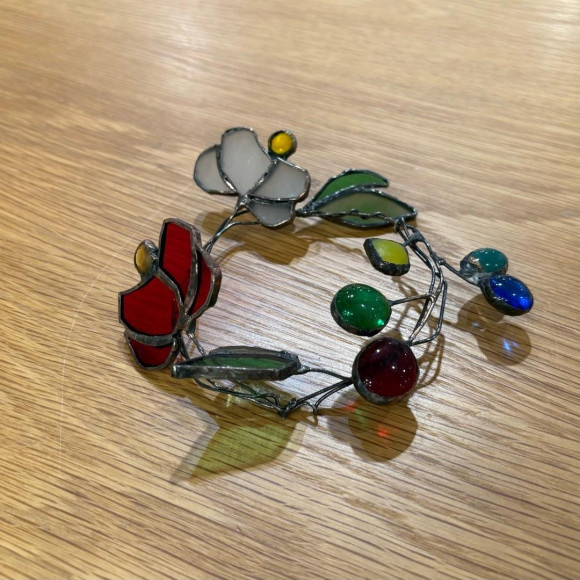 すてきな迎春ガラスピックが完成しました。光が当たるとよりキラキラとして、とてもきれいですね。