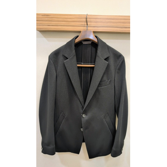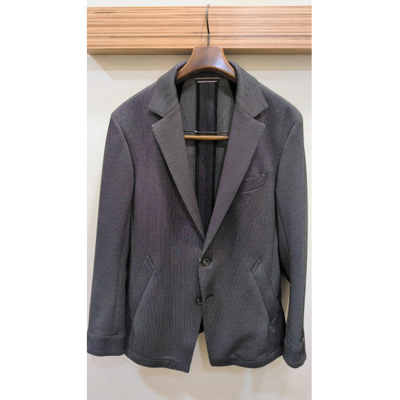 ラペルからフロントカットのデザインを直線的に作り、ウエストをシェイプさせた綺麗なシルエットで、シャープさを強調したデザインジャケットです。