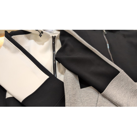 大胆なパネル切り替えデザインのZIP-UPパーカーです。