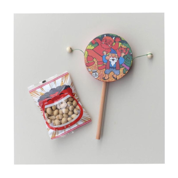 節分の日を楽しく過ごせる、でんでん太鼓付きのお豆セットが入荷しています。