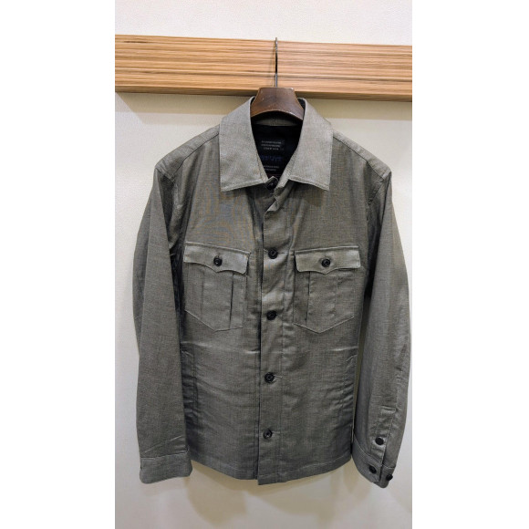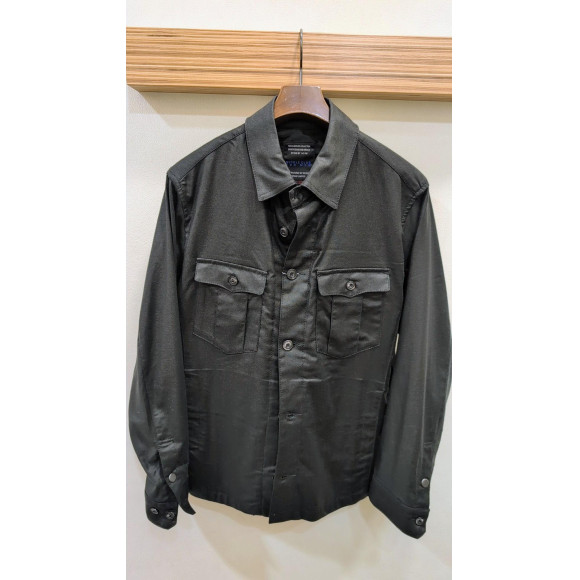 衿の前端にはワイヤーを入れて遊びを効かせ、ウエストをシェイプさせた綺麗なシルエットと、CPOシャツならではWパッチポケットにはBOXプリーツを入れてミリタリー感を強調しています。