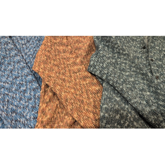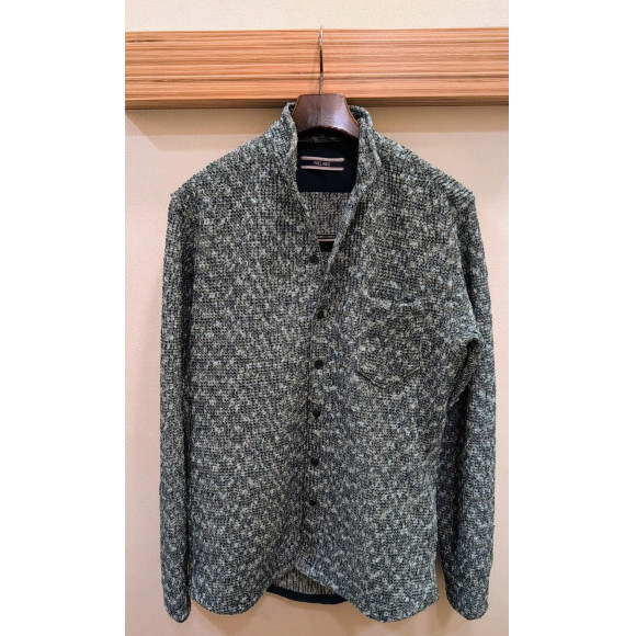 身頃に入れた切り替えデザインでラインをスッキリ見せ、同色のストレッチ裏地を裏側に使用、リエラボ別注釦や、脇の縫い代に抗菌防臭テープを仕込み機能性もプラスしています。