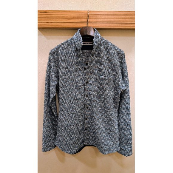 衿端にワイヤ-を仕込んだショートスタンド・イタリアンカラ-シャツです。