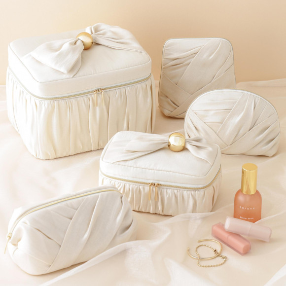 他には、コンパクトで持ち運びやすいSサイズ、自立して中身の整理をしやすいスタンド型、大容量でコスメをたっぷり収納できるワイヤーポーチやバニティタイプをラインアップ☆