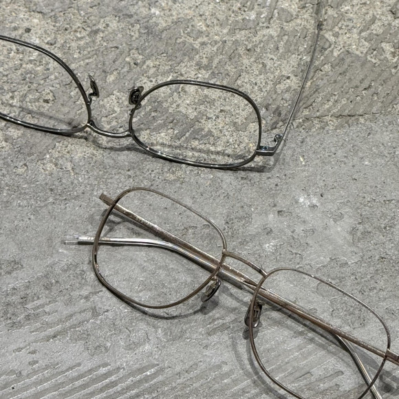全体的に非常にミニマルな意匠だが、テンプルの内側の甲丸感やしのみ部のドット、ブリッジ、智など、部位により形状の変化をつけています。