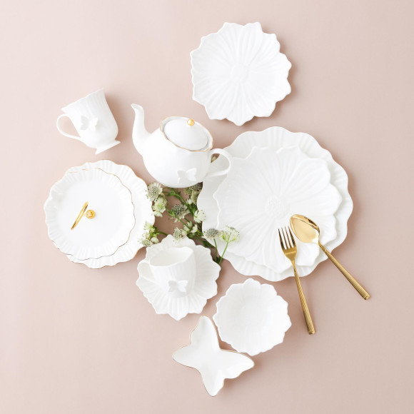 本日ご紹介するのは、花をモチーフにしたプレートやカップ&ソーサー、ティーポット、マグ、ケーキスタンドまで揃う、可憐なテーブルウェアコレクションです♡♡